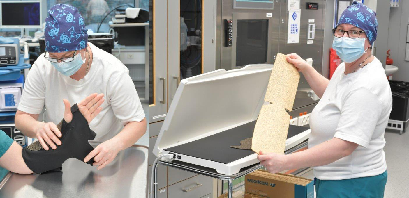 Lääkintävahtimestarina Puistosairaalan plastiikkakirurgian leikkausosastolla työskentelevälle Karolina Koposelle puukipsi on tuttu jo kymmenen vuoden takaa. Kun Karolina aloitti leikkurissa, vain yksi kirurgi käytti Woodcastia, muuten kipsit tehtiin muovilla. Karolina aloitti materiaalin markkinoinnin sisäisesti, ja nykyään käytännössä kaikki kipsaukset hänen osastollaan tehdään puukipsillä.
